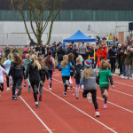 Pünktlich um 13:30 begannen die 800m-Läufe der Jahrgänge 2010 und jünger. Bei den Mädchen kam Hannah Röttger (Laufart) mit einer Zeit von 2:46,7 min. aus Platz eins. Das Podest wurde vervollständigt durch Frida Frerichs (Platz 2, VfB Salzkotten, 2:52,3 min.) und Marie Hentschel (Platz 3, TuRa Elsen, 2:58,8 min.).